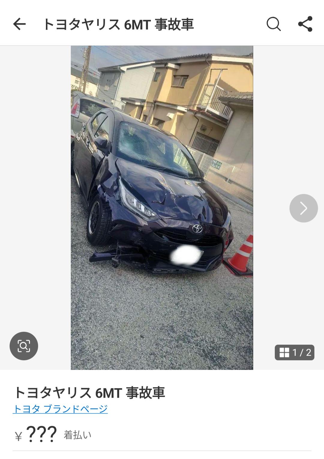 【画像】メルカリにとんでもない「事故車」が出てて草wwww
