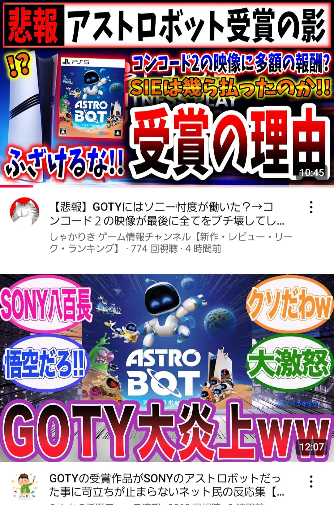 【悲報】ゲーム系YouTuber達、アストロボットがGOTYを受賞してブチギレwwwww