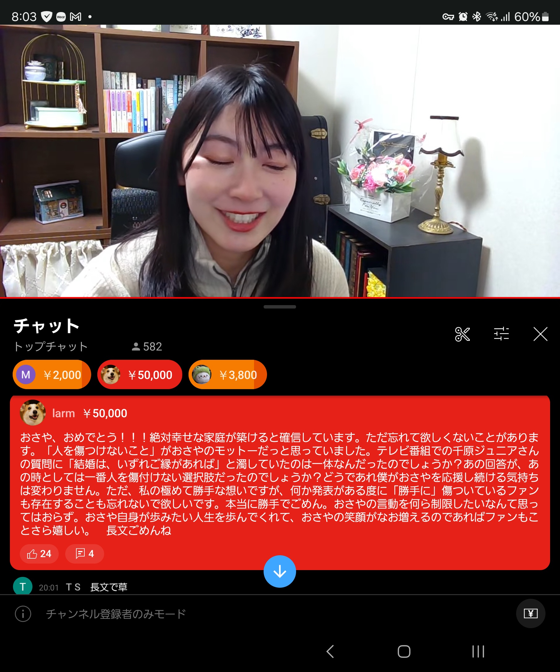 【悲報】檜山沙耶オタク、5万円払って気持ち悪いスパチャを送ってしてしまうwwww