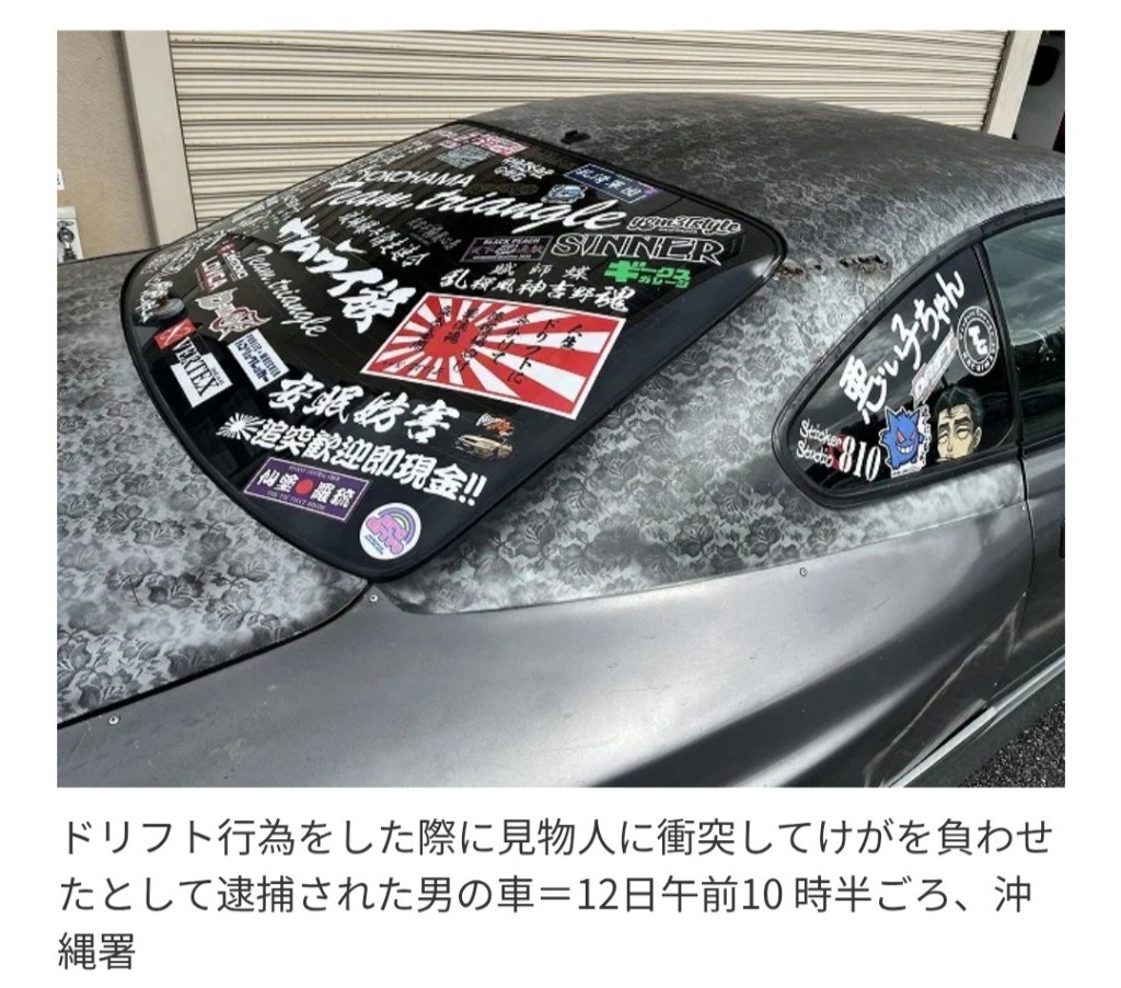 【画像】ドリフトしていたDQN、見物人の高校生にぶつかり怪我をさせる。おまえらの想像よりちょっと昭和寄りのDQN。なめ猫系。