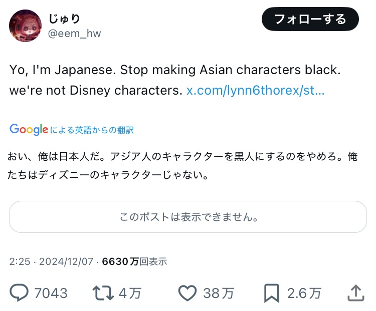 【悲報】アニメアイコン「アジア人のキャラを黒人にするのやめろ」←38万イイネ
