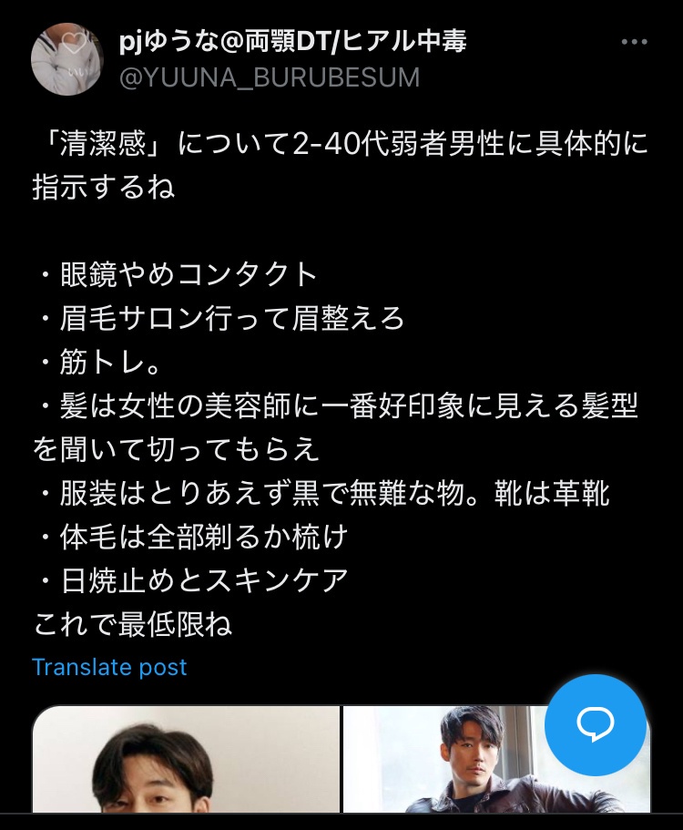 【画像】女さん「20-40代の弱者男性へ。清潔感出してモテたかったら最低限これしろ」ドンッ!