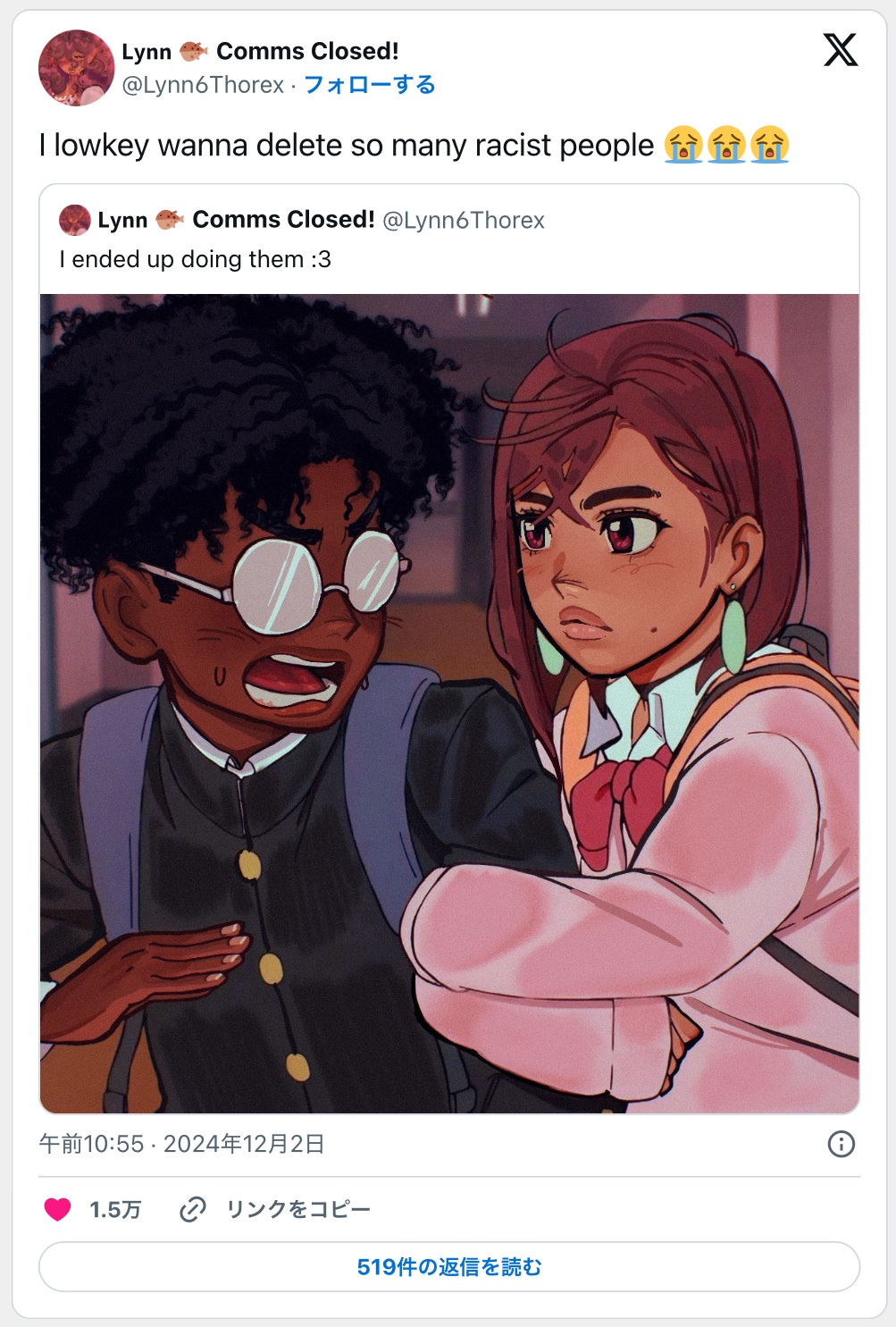【画像】大人気アニメのヒロイン、「黒人」になるwwww