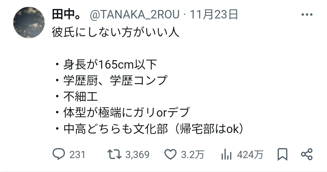 【悲報】女さん「彼氏にしない方がいい男の特徴がこれねw」