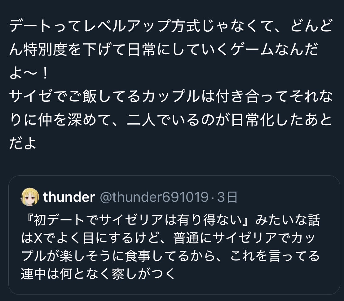 【悲報】アニメアイコン「初デートでサイゼはおかしくない!」→恋愛強者に論破されるwwww