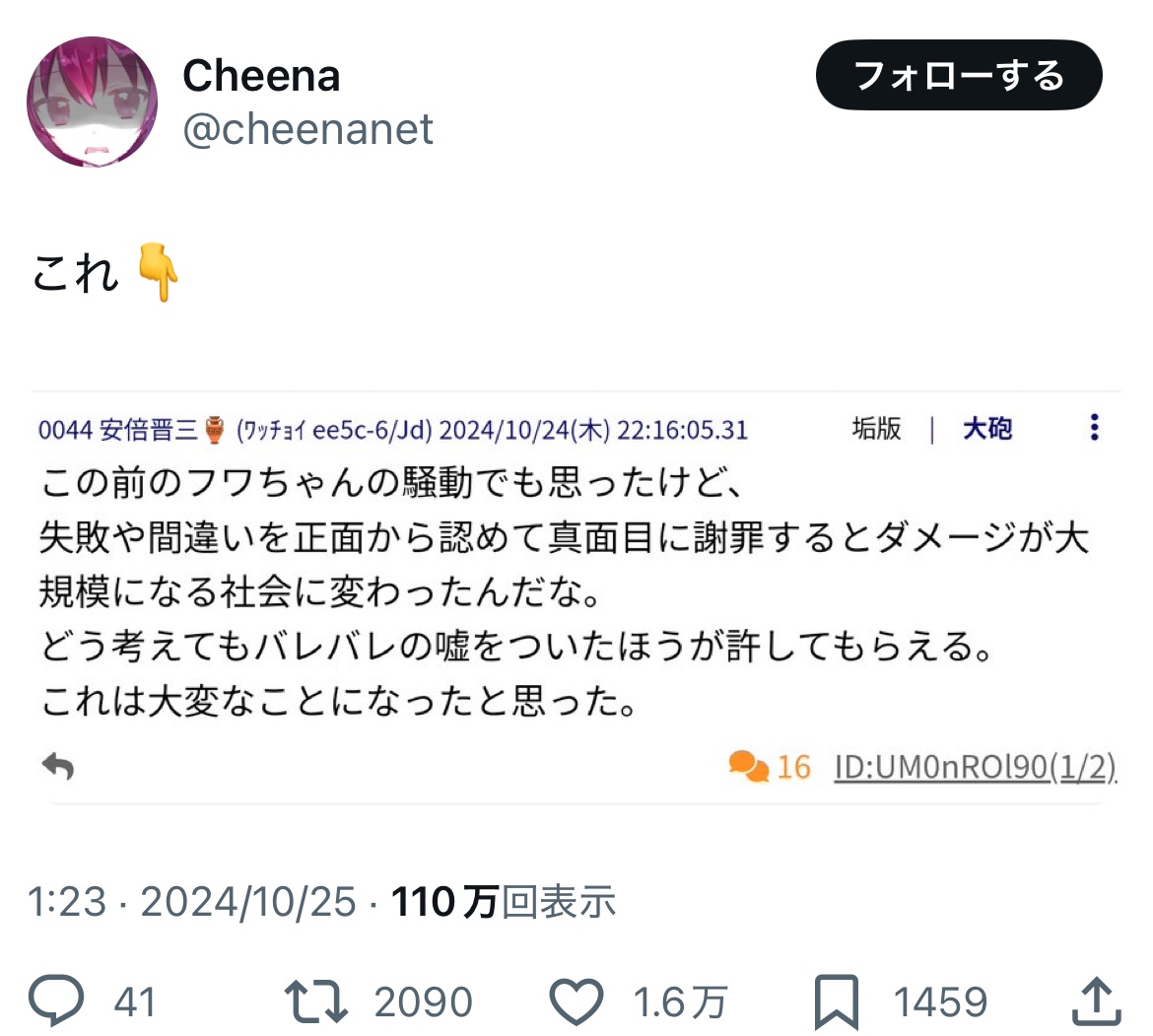 【悲報】ネット民「日本は不祥事で嘘をついたもの勝ちになってる。」アニメアイコン「←これ」
