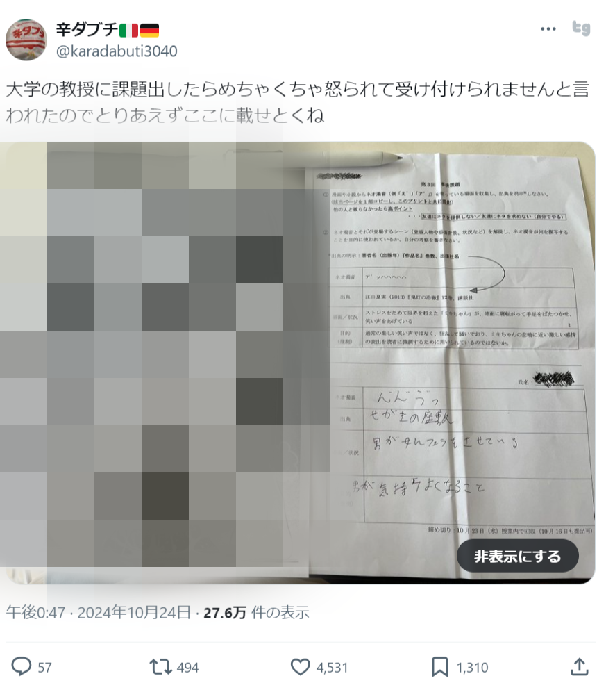 【悲報】チー牛、大学のレポートに「成年向け漫画」を提出して怒られてしまうwwww