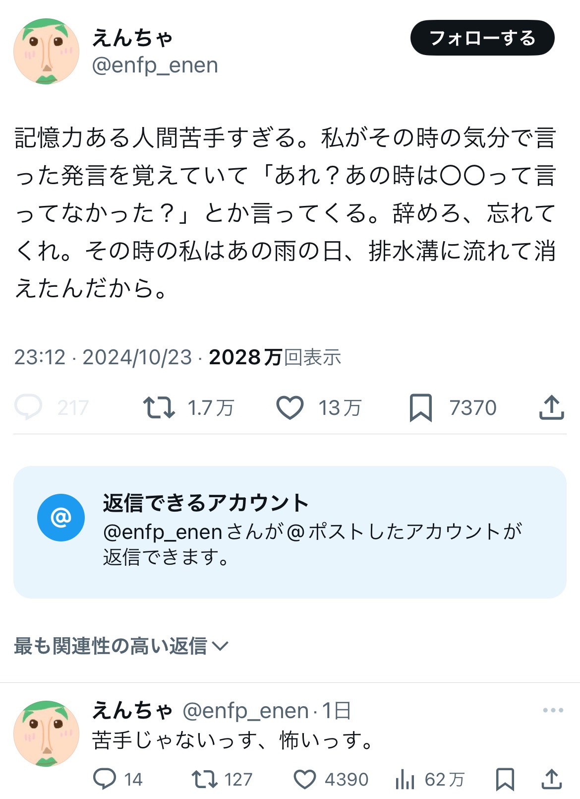 【悲報】識者「記憶力高い人が怖い。私が気分で言った発言いちいち覚えてて『あの時は〇〇って言ってなかった?』とか言ってくる」
