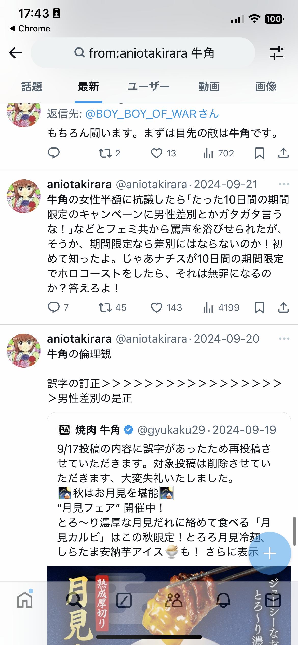 【悲報】アニメアイコンさん、牛角に1人で1ヶ月以上粘着し続けるwwww