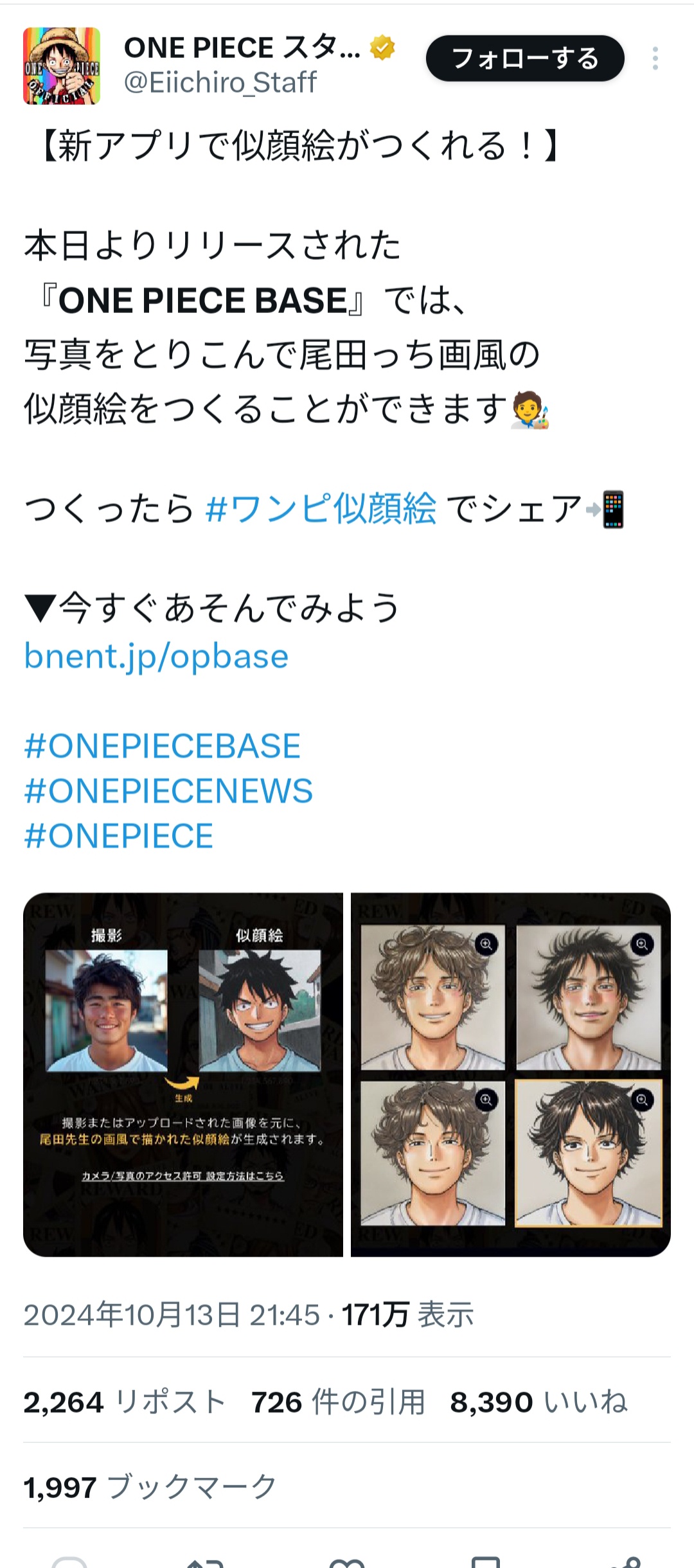 【悲報】反AIさん、ワンピース公式の写真を「尾田風似顔絵」にするアプリにブチギレるwwww