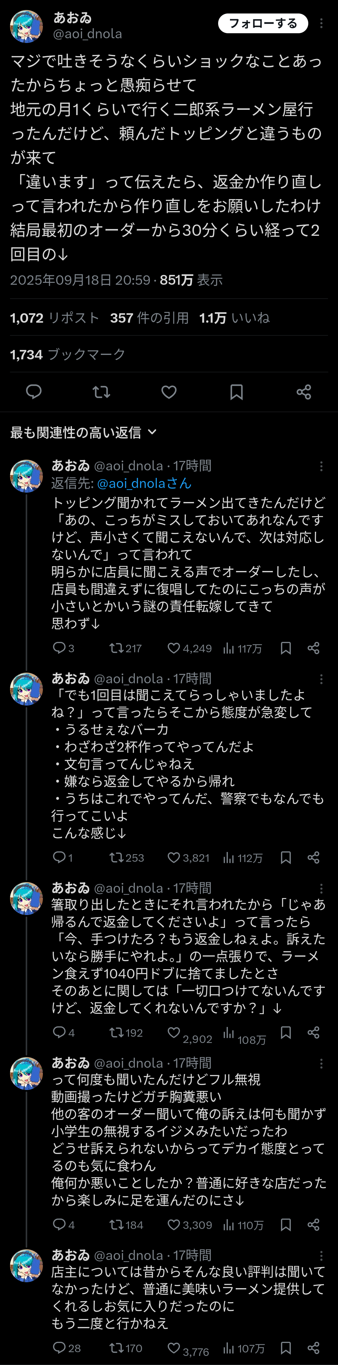 【悲報】アニメアイコンさん、二郎系ラーメン屋とトラブって吐きそうになるwwww