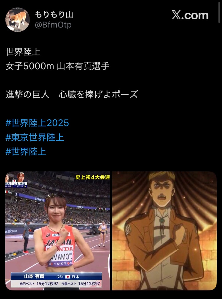 【画像】激カワ陸上女子「アニメのポーズ流行ってんだ!私もやろ!」→弱男弱女「!」シュババババ