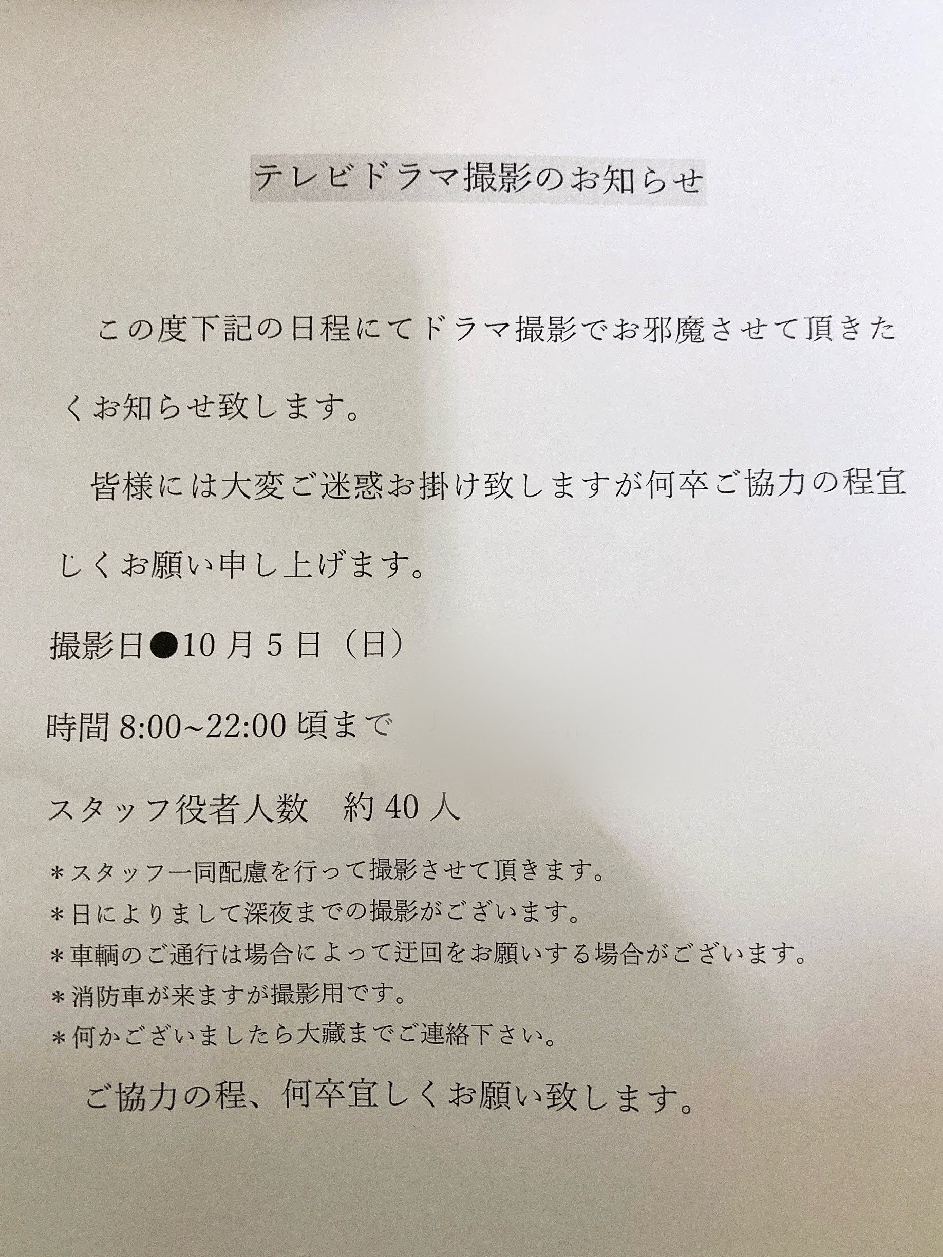 【画像】テレビドラマさん、住宅街で撮影をするために住民にお願いをするwwww
