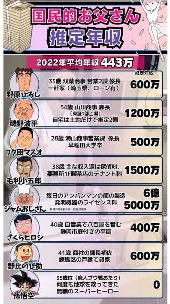 【画像】国民的パパキャラの年収、明らかにされるwwww