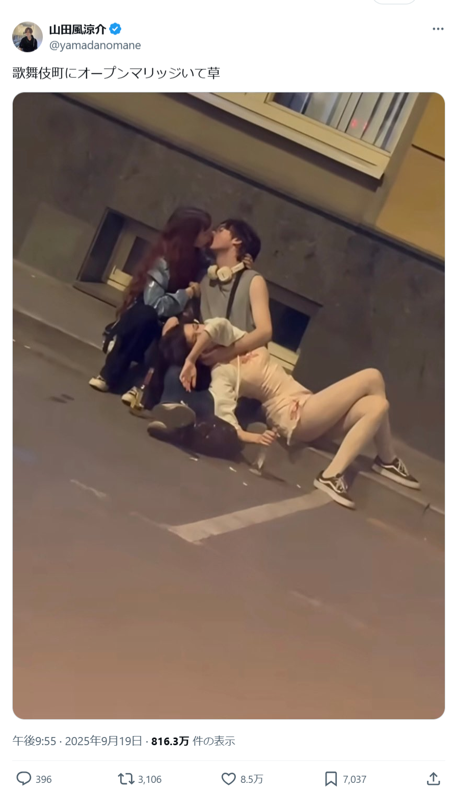 【画像】「オープンマリッジ」してる男、歌舞伎町で発見されるwwww