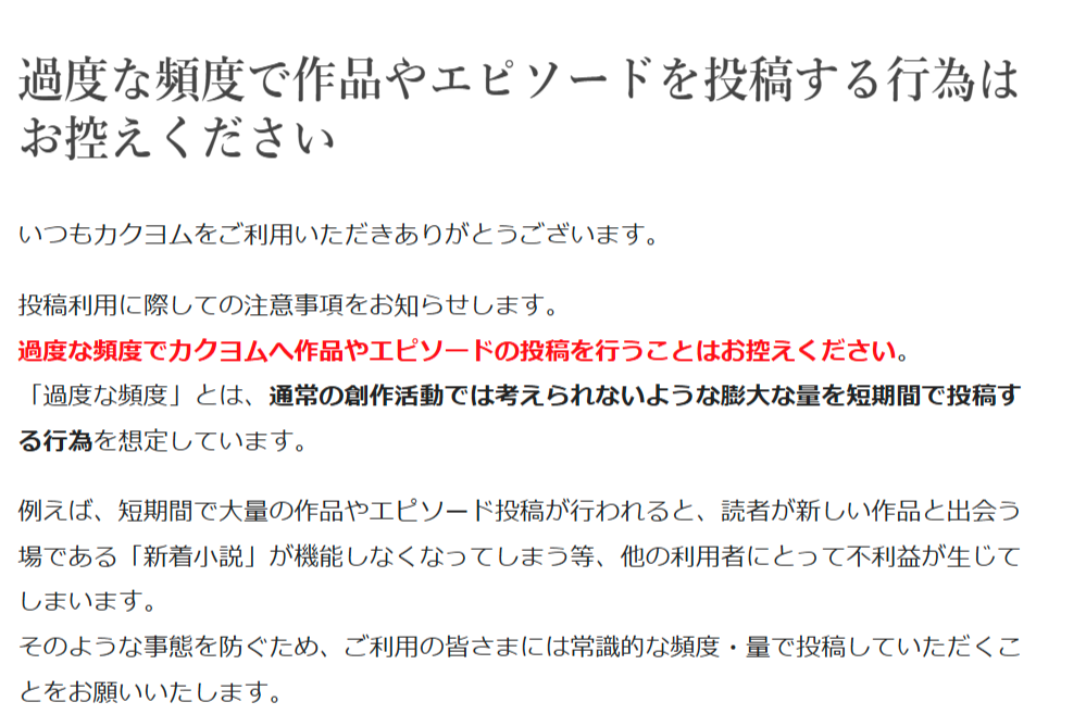 【悲報】小説投稿サイト「考えられない頻度で作品を投稿するのはやめてください」