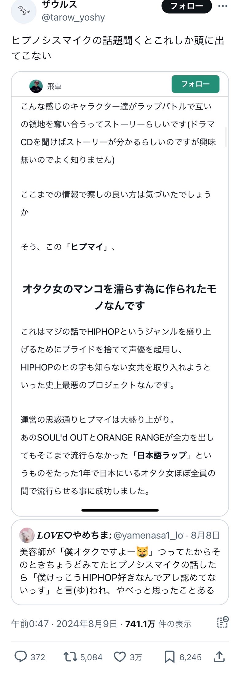 【悲報】男「ヒプマイはオタク女を濡らすために作られたコンテンツ」→女オタクさんに論破されるwwww