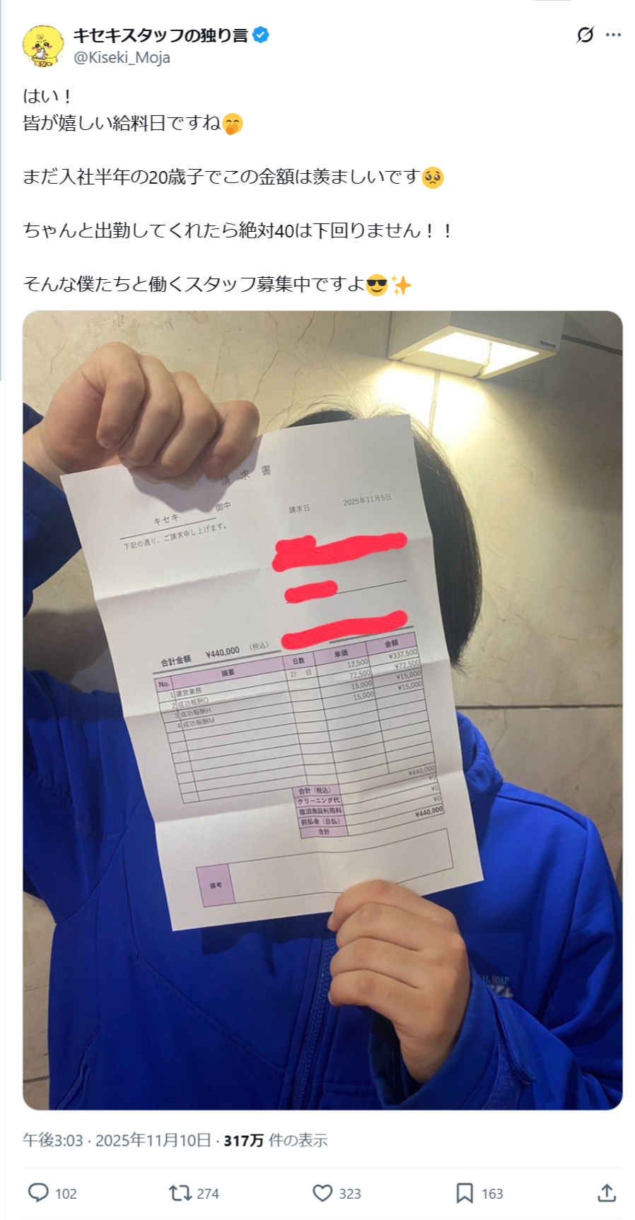 【画像】夜のお店の新人スタッフ、入社半年でとんでもない月収を叩き出すwwww
