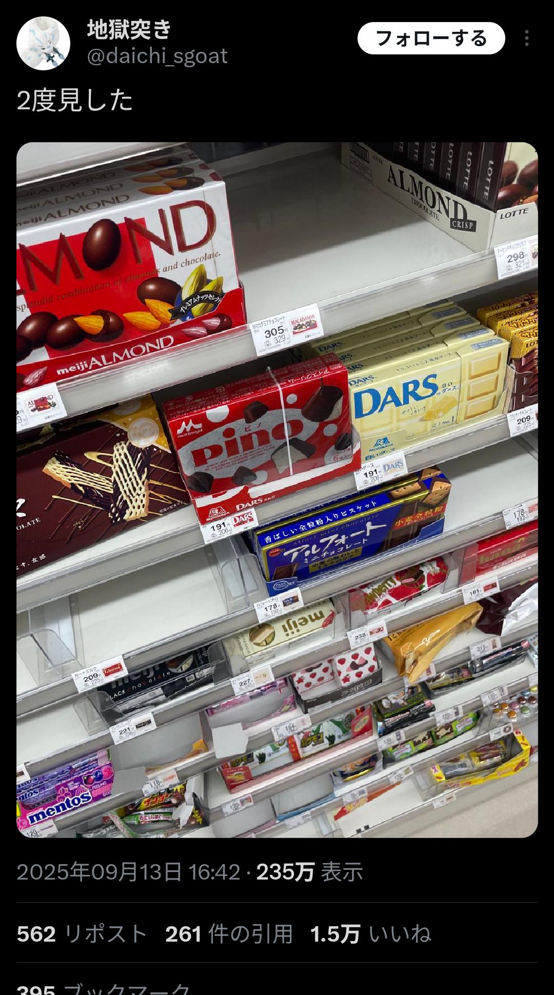 【衝撃画像】X民、スーパーのお菓子棚に違和感を持ち2度見するwwww