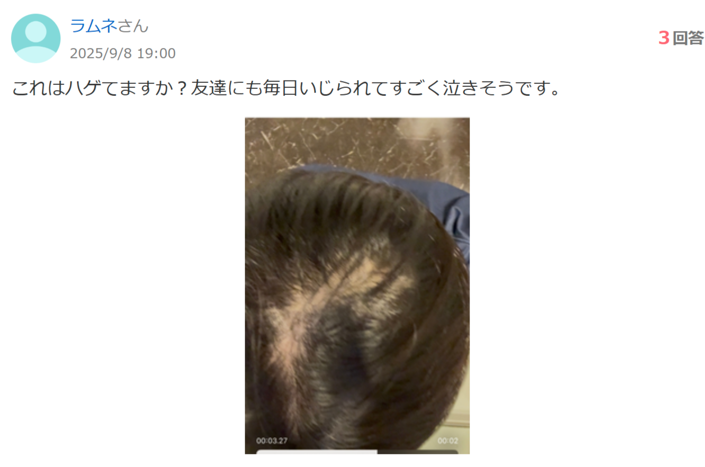 【画像】17歳男性、髪の毛に悩む「これハゲてますか?友達にもいじられてすごく泣きそうです」(パシャッ