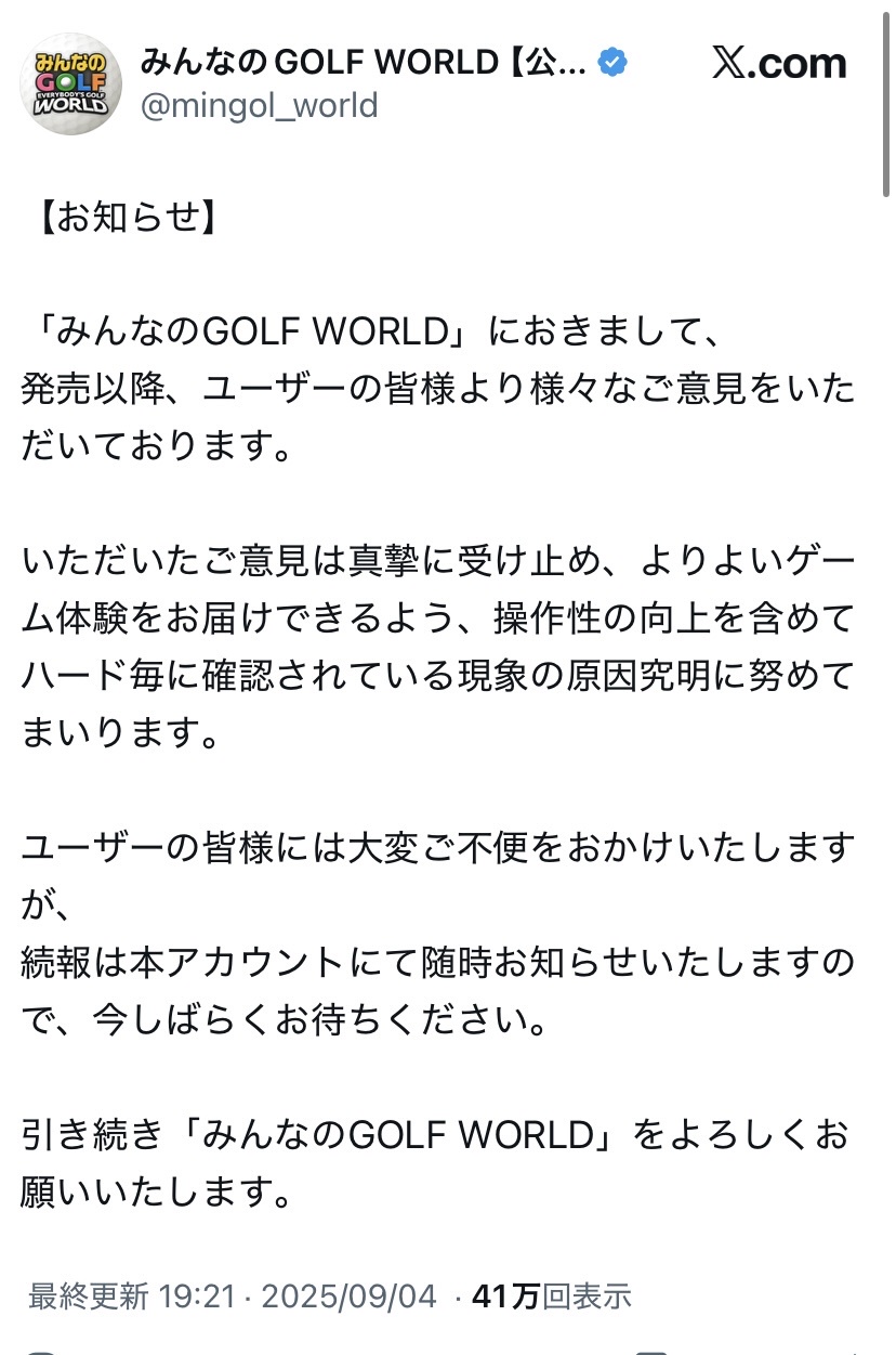 【悲報】人気ゲーム最新作、発売日にユーザーからの「不具合報告」続出で公式が謝罪wwww