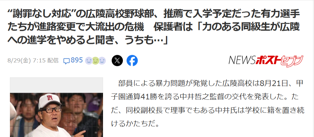 【悲報】中学球児「広陵高校から推薦貰ってたけど進学やめます」←これええんか?
