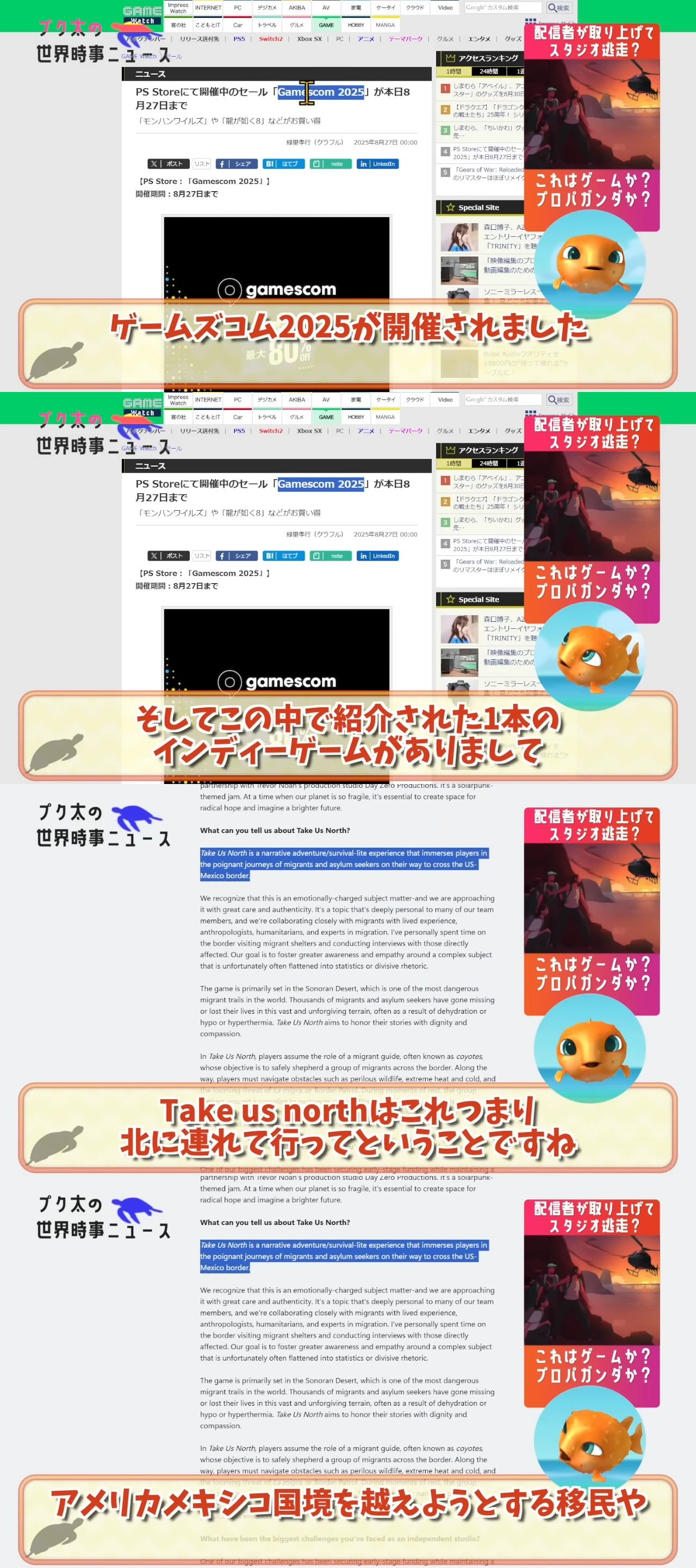 【悲報】海外のゲームメーカー、密入国者シミュレーションゲームを発表してしまい炎上。ちょっと面白そうで草wwww
