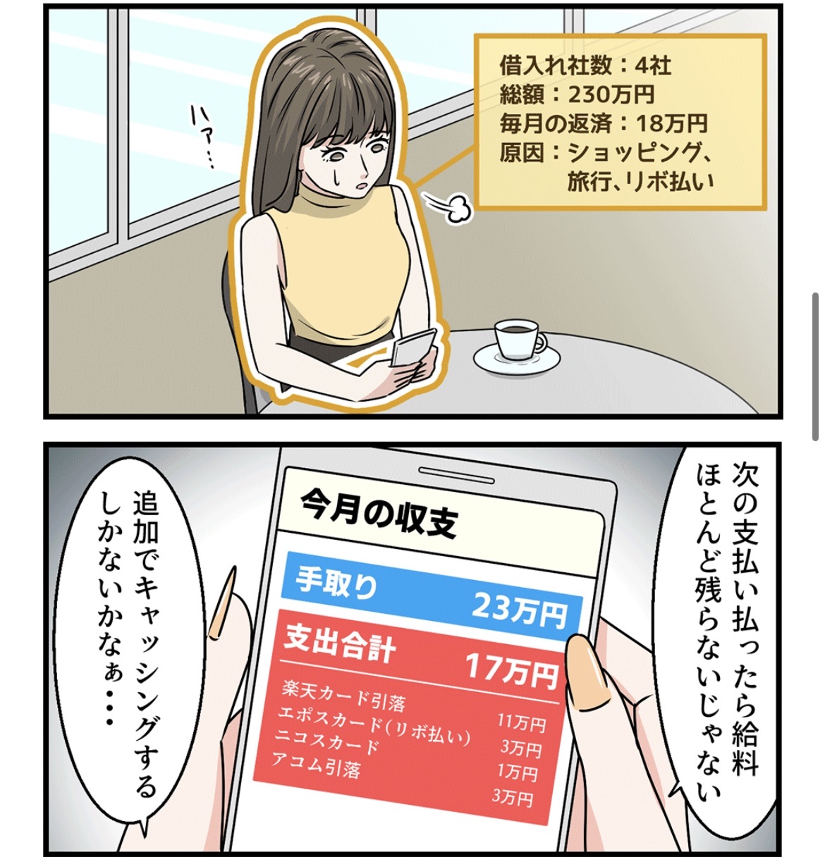 【悲報】この漫画の女さん、手取り23万で借金返済額18万という計画性のなさを見せつけるwwwww