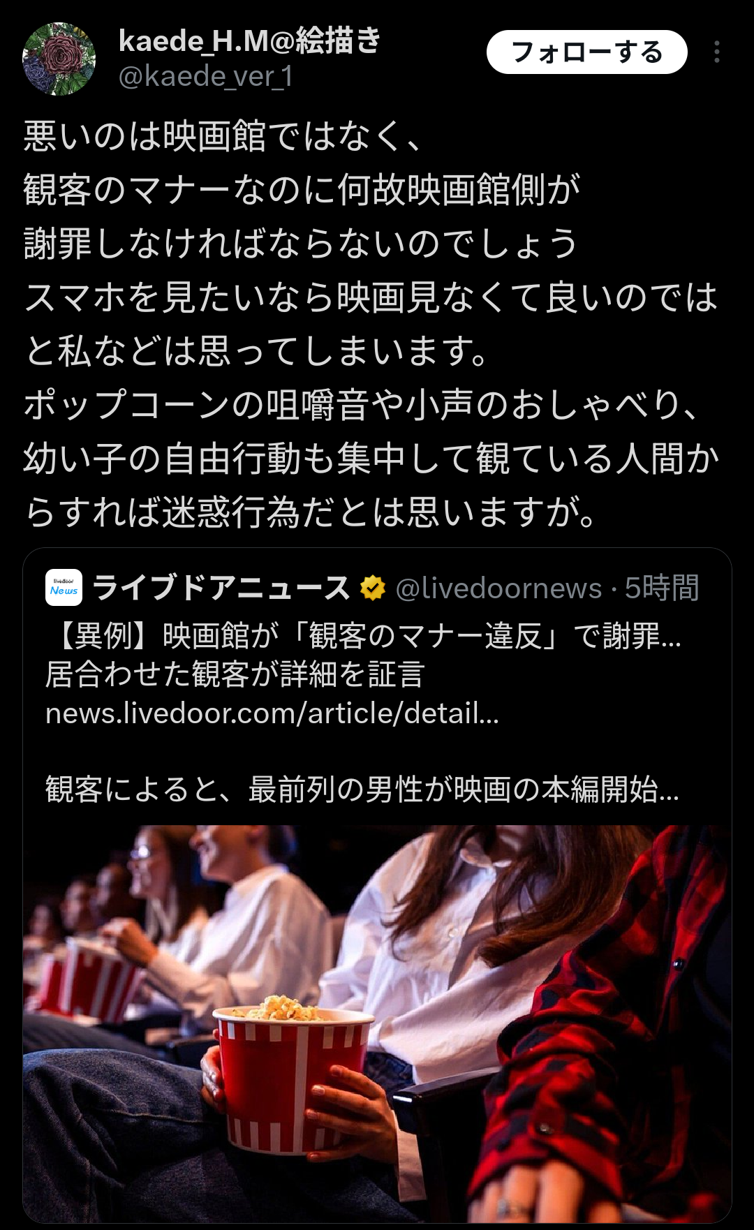 【悲報】映画館、クソ迷惑客のせいで謝罪させられる事態にwwww