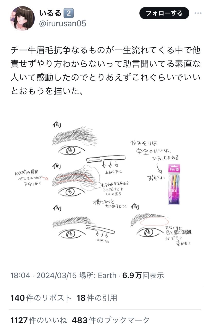 【画像】女さん「チー牛くん、眉毛の整え方わからないの? イラスト付きで教えてあげるね!」