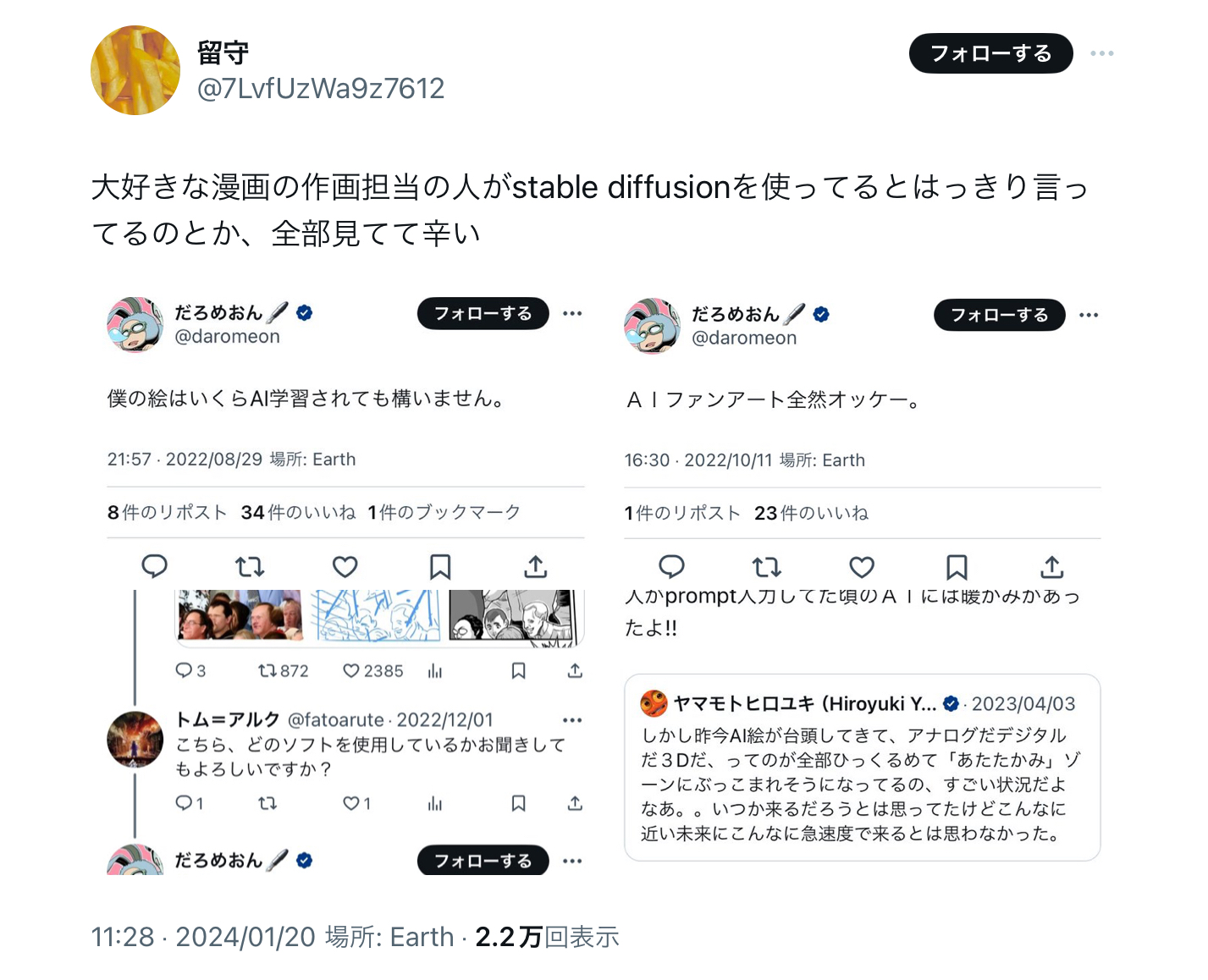 【悲報】人気漫画作画「僕の絵はいくらでもAI学習されてもいいよ」→反AIに叩かれるwwww