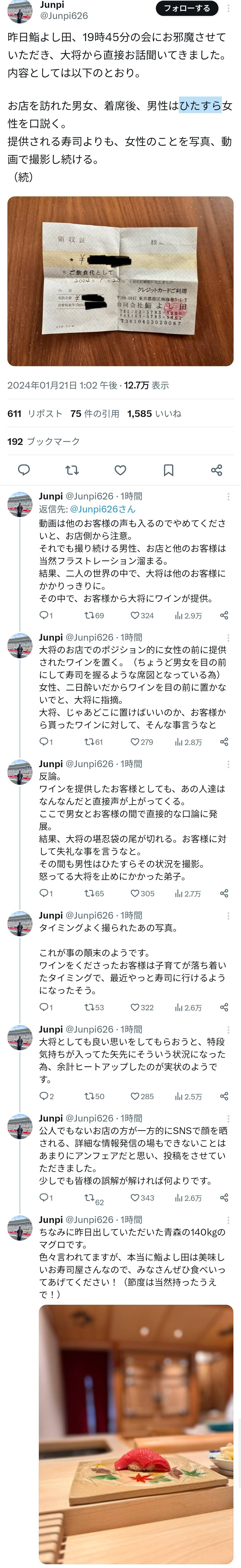 【悲報】例の寿司屋vsラウンジ嬢の写真、動画の切り取りで実際は迷惑客を大将が諌めていただけだった可能性濃厚へwwwww