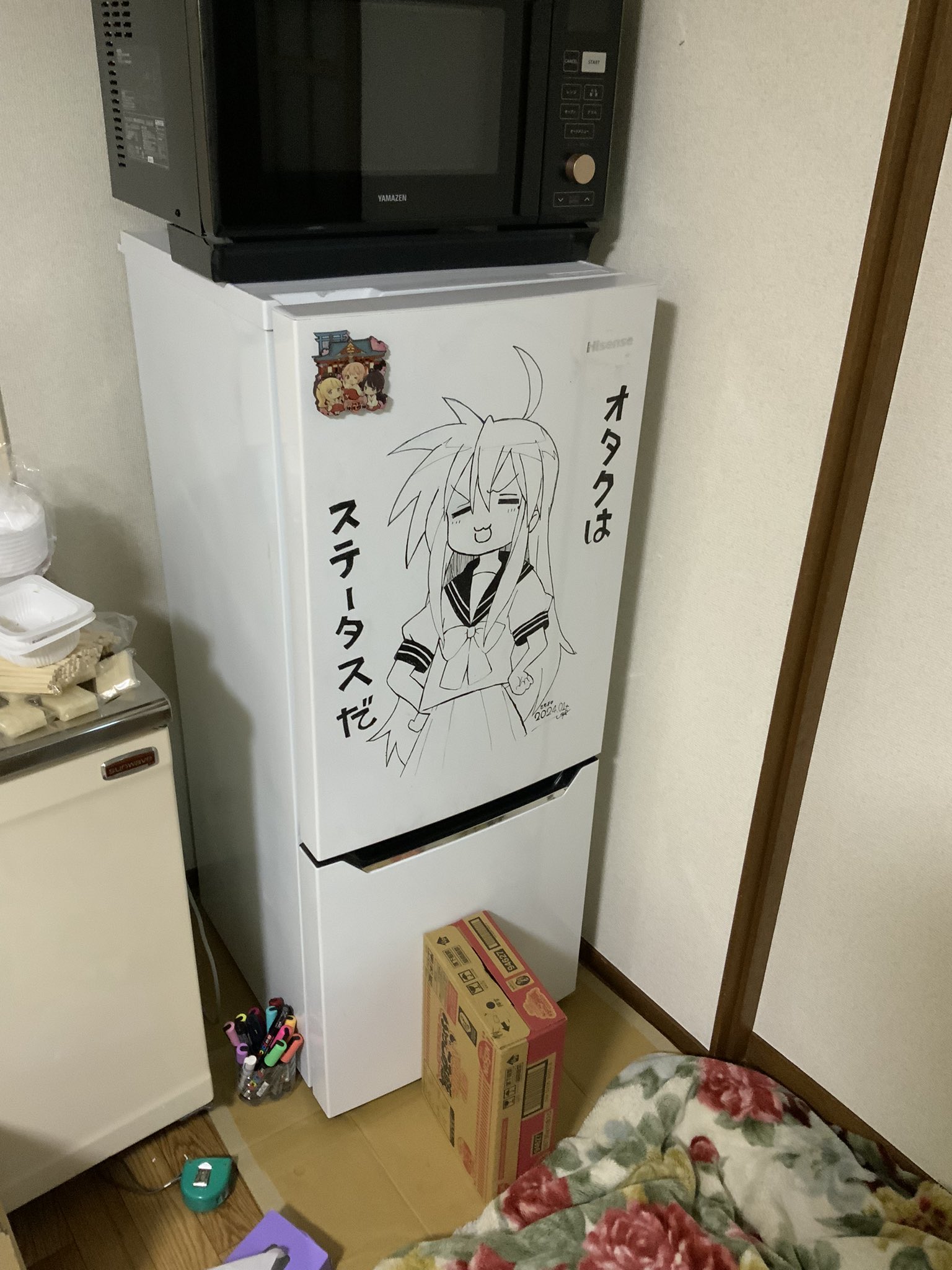 【悲報】古参オタク、寄った勢いで冷蔵庫に落書きする。上手すぎて草wwww