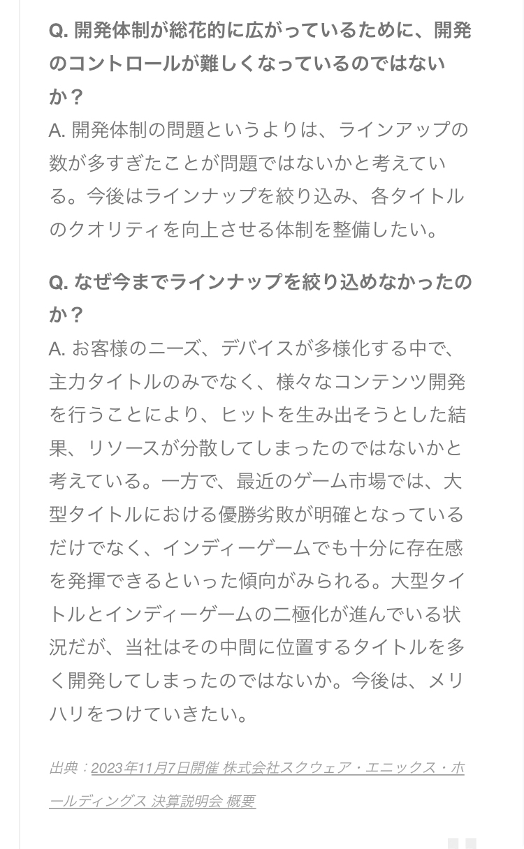 【悲報】株主「開発するゲーム、絞り込めなかったの?」スクエニ「…」