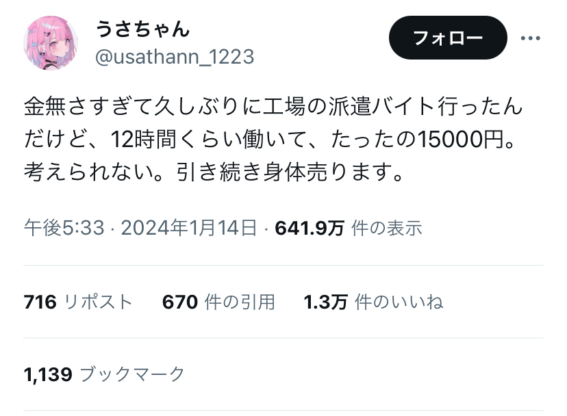 【悲報】アニメアイコン女さん、工場派遣のバイトをするも安すぎて絶望wwwww