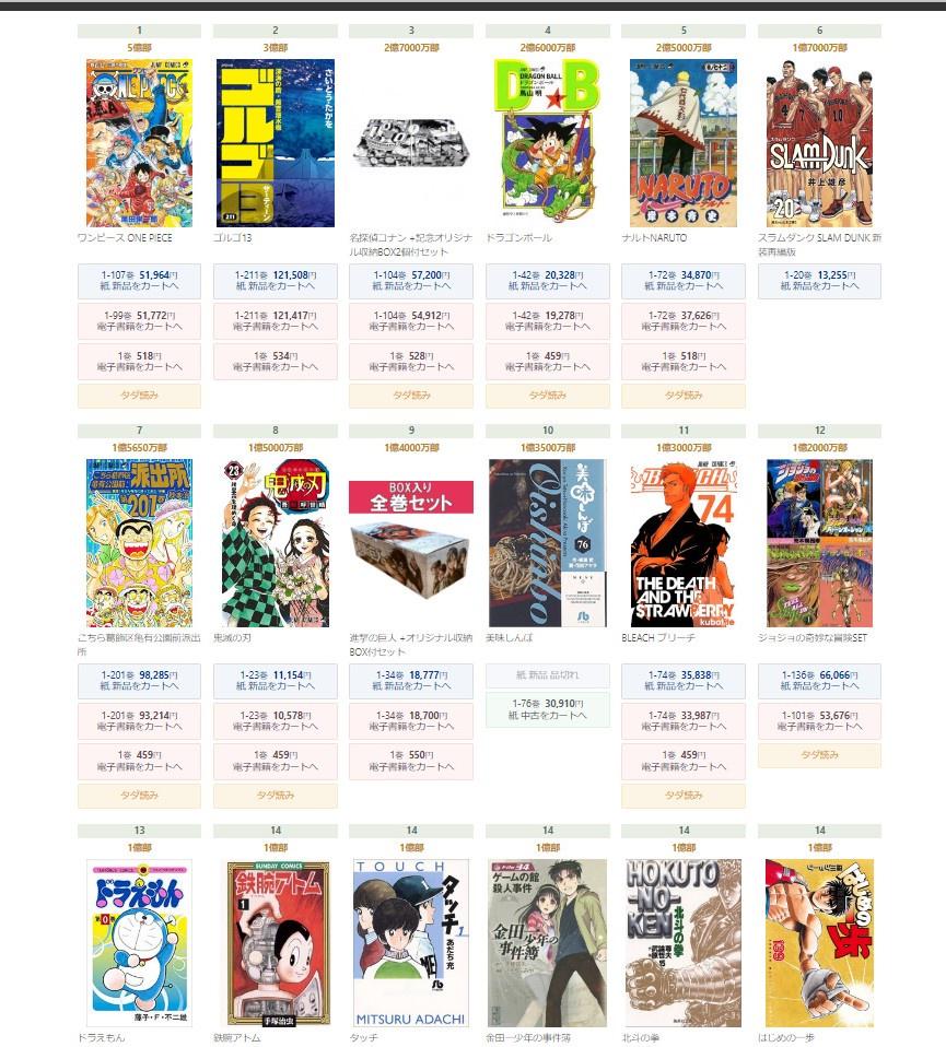 【悲報】発行部数「1億部越え」の漫画、ジャンプ作品ばかりで草www