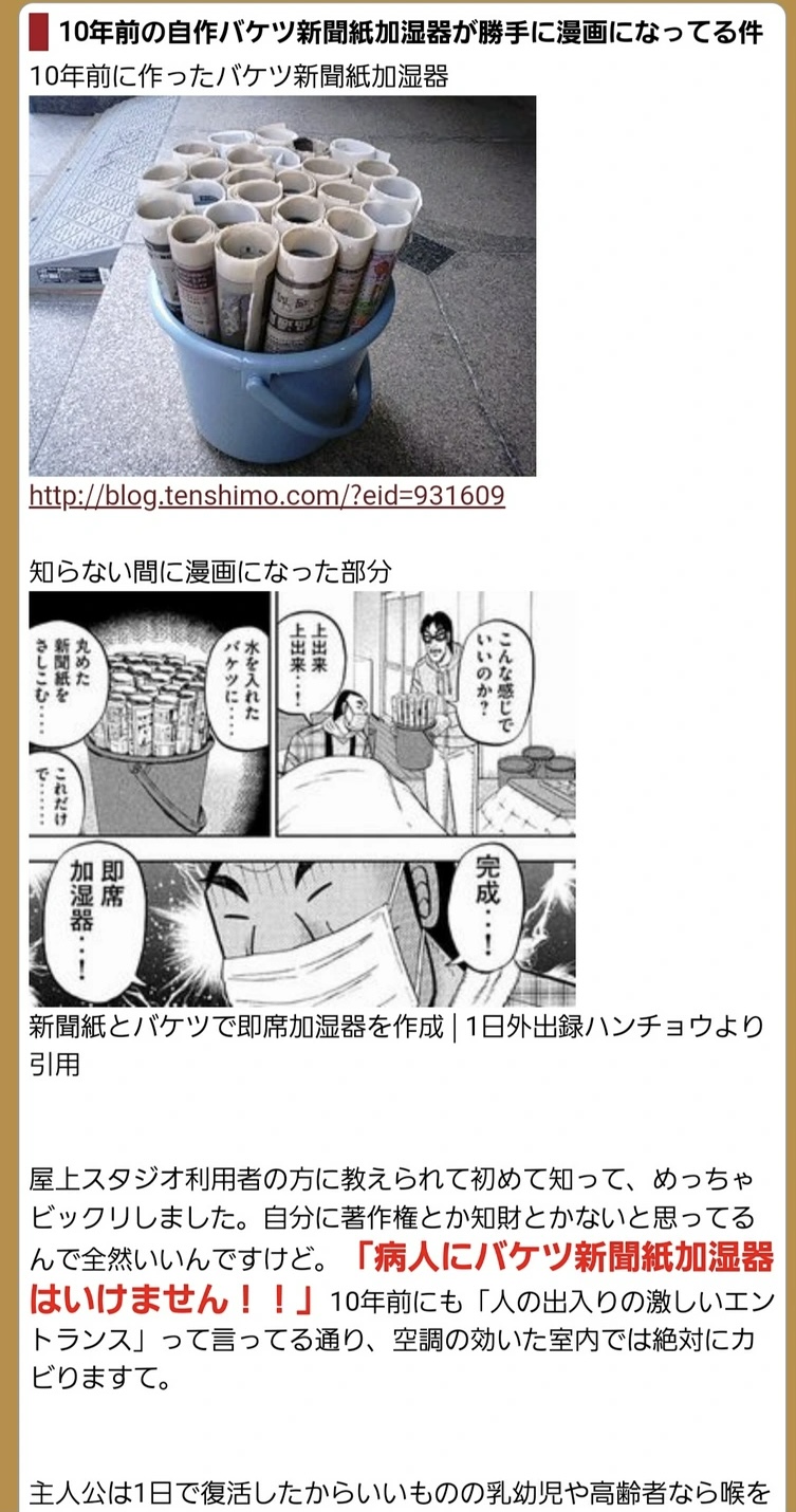 【悲報】有名漫画に出てきた「新聞紙加湿器」、とんでもない罠だったwwww