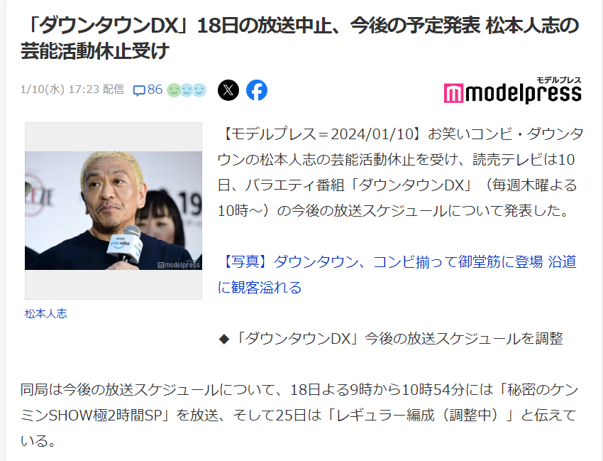 【悲報】ダウンタウンDX、18日の放送中止決定へ。もうガチで終わりだよwwwww