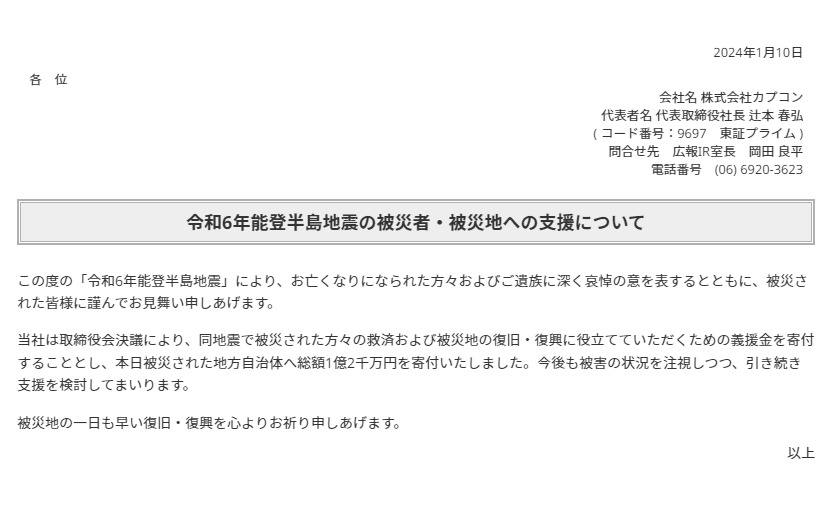 【朗報】カプコン、被災地に1億2000万円を寄付するwwww