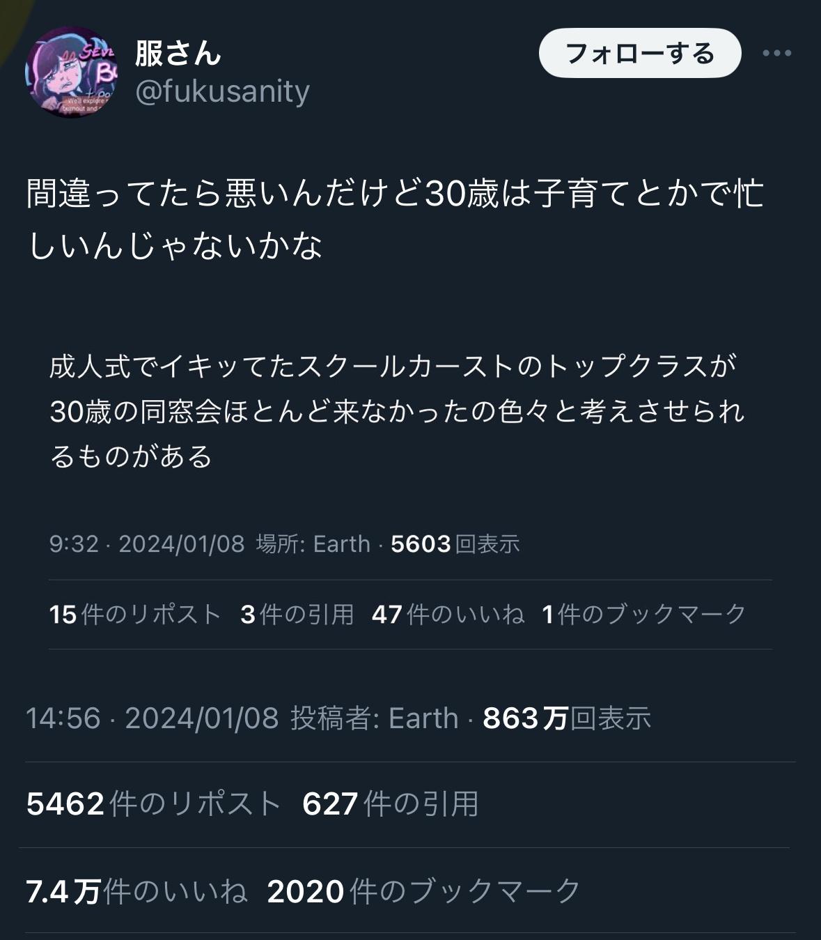 【悲報】識者「成人式でイキってた奴らは30歳の時同窓会に来ない」アニメアイコン「…」シュバババ