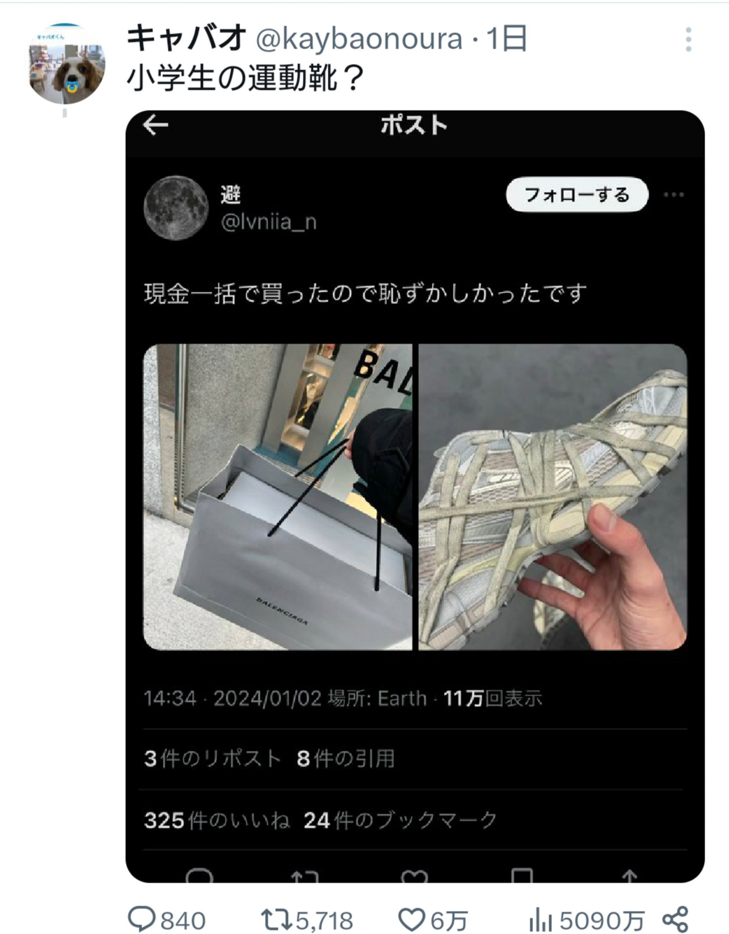 【悲報】ハイブラ靴購入者、嫉妬民から「小学生の運動靴?」とバカにされてしまうwwww