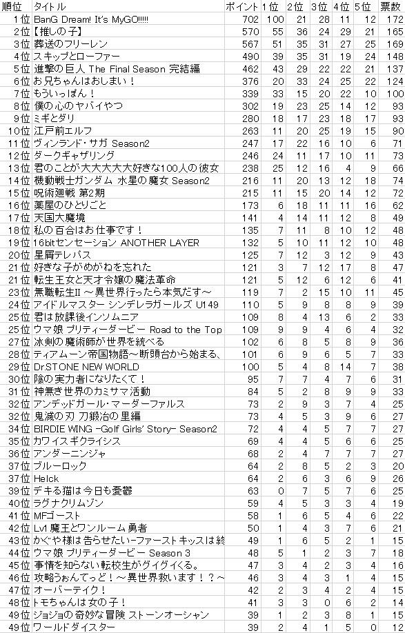【悲報】2023年「5chアニメランキング」、遂に発表。ガチで参考になると話題にwwww