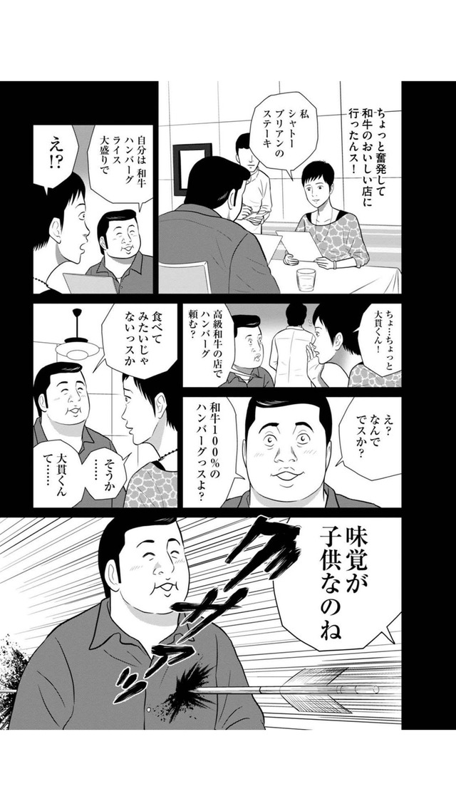 【画像】この漫画の女さん「高級なステーキハウスでハンバーグを注文するような男はガキ(笑)」