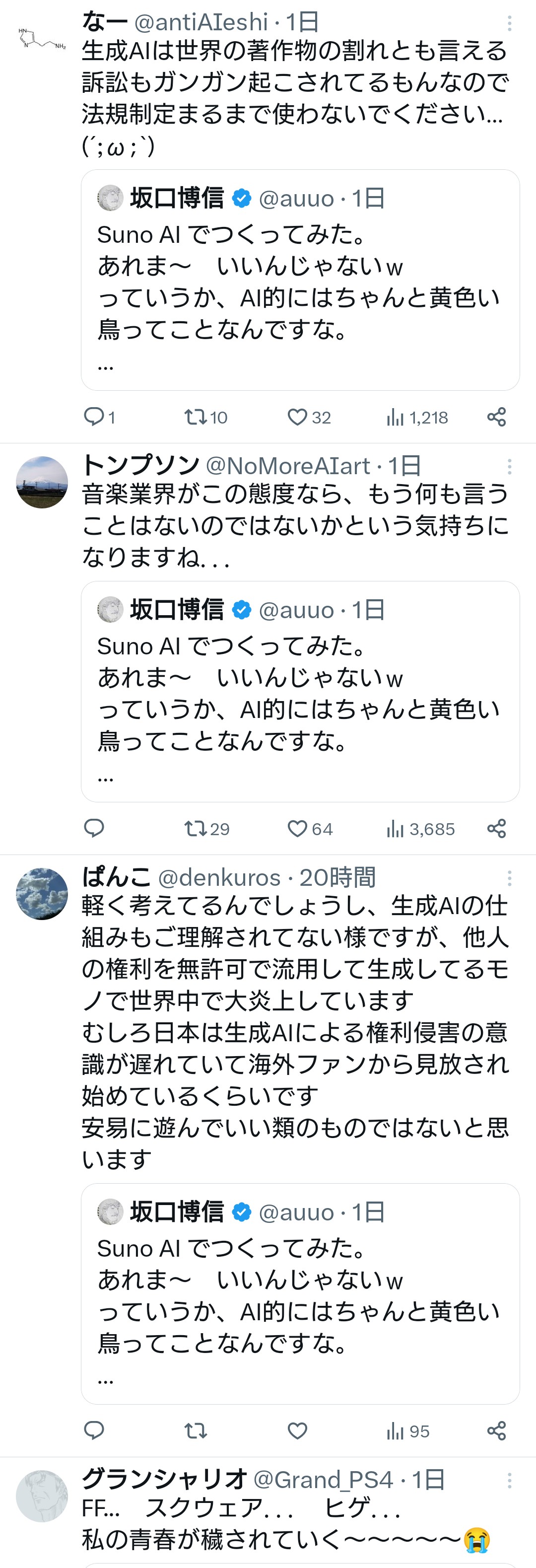 【悲報】FF産みの親「AIで作曲してみた」←反AI派に批判されてしまうwwwww