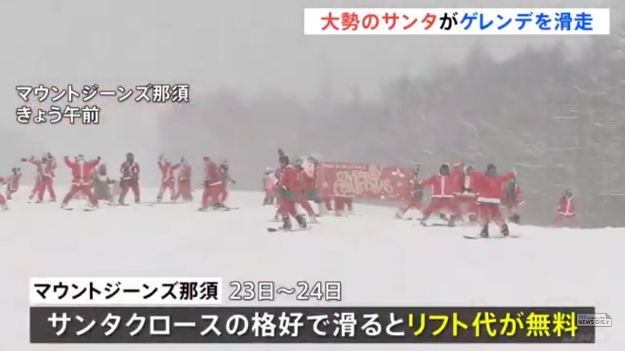 【画像】スキー場「サンタコスで滑るとリフト代無料!」ワイ(そこまでする奴おらんやろw)→結果wwwww