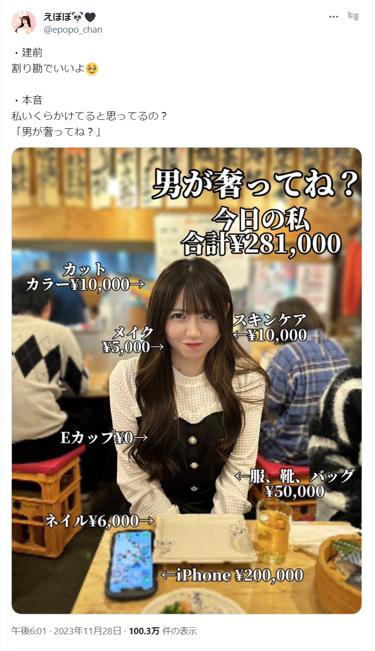 【悲報】女YouTuber「今日の私、合計281,000円。男が奢ってね?」ドンッ