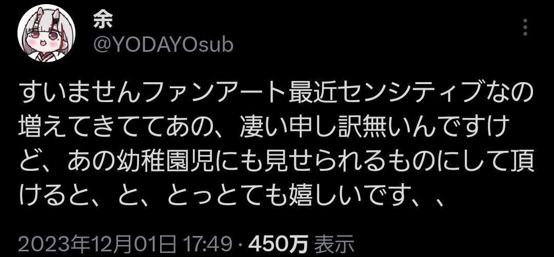 【画像】人気VTuber、最近のファンアートに苦言「幼稚園児にも見せられるものにして」