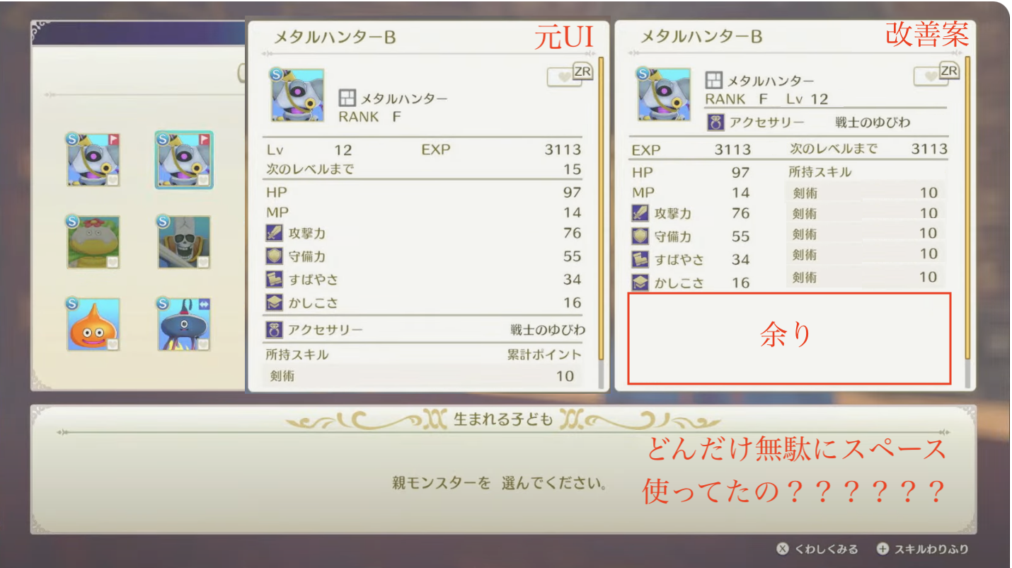【悲報】UIがクソすぎて話題のドラクエモンスターズ3、素人が切り貼りして作った改善案が凄すぎて話題にwwwww