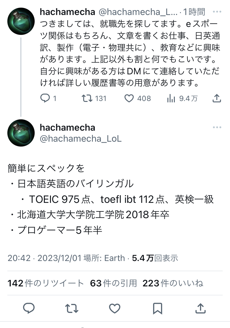 【画像】プロゲーマー「引退するので就職先を探しています」→スペックが高すぎて草wwww