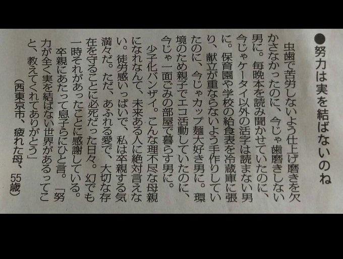 【悲報】チー牛を産んだ母親、怒りの新聞投書「努力が実を結ばない世界を教えてくれてありがとう」